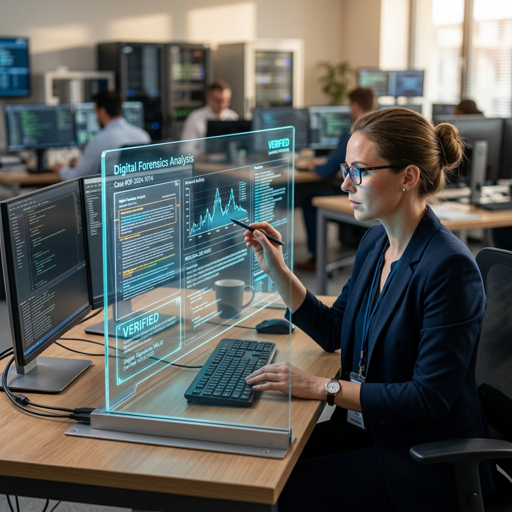 Diferente do exame no qual se gasta horas olhando uma folha contra a luz com uma lupa milimetrada, o procedimento pericial digital segue rigorosos protocolos de “Computer Forensics”, entre os quais se destacam metodologias endossadas por instituições como a ISO/IEC 27037 (Diretrizes para identificação, coleta e preservação de evidências digitais).